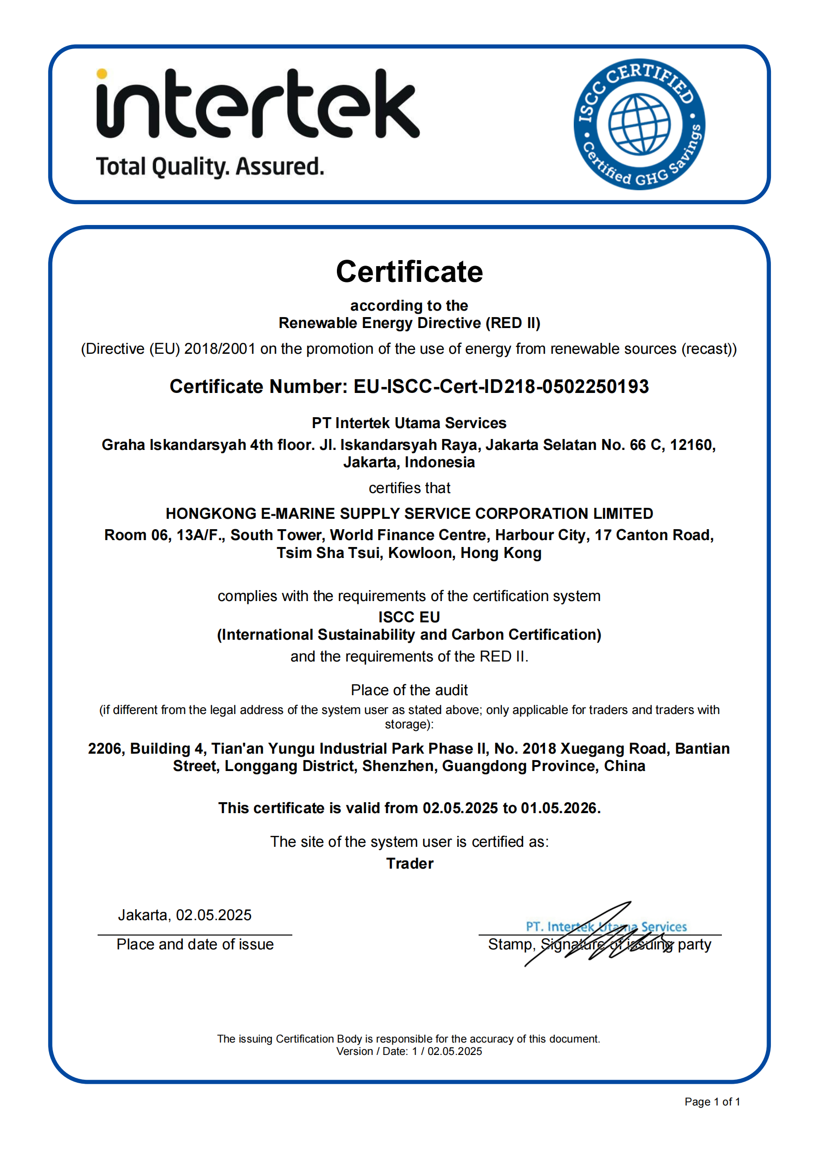 Established in Hong Kong, China in 2016, E-MARINE has been a service enterprise specializing in marine fuel oil. With mainland China, Hong Kong, Taiwan, South Korea, Japan, and Southeast Asia as core advantageous regions, the services radiate to mainstream ports such as Singapore, Port Klang in Malaysia, Jakarta in Indonesia, and Ho Chi Minh City in Vietnam. We are committed to deliverring safe, compliant, and cost-effective marine fuel services to global ship owners and shipping enterprises.